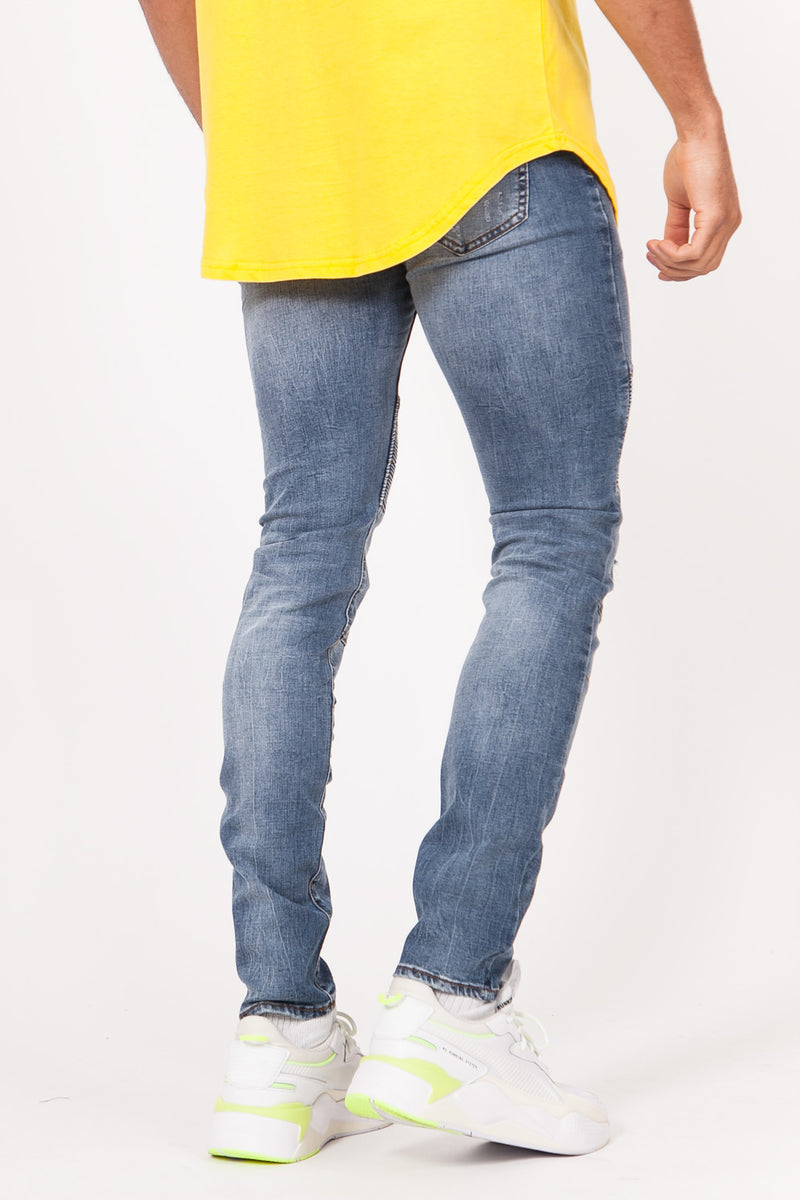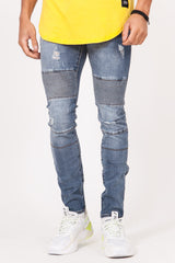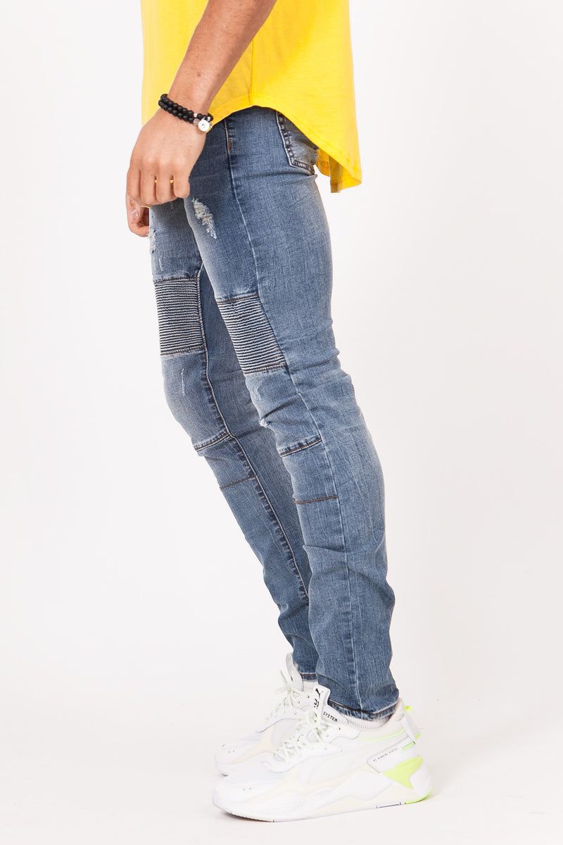 Jean bleu Sixth June Homme. Style biker. Légèrement délavé et destroy. Coupe slim.