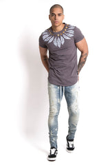 Jean destroy paint Bleu clair