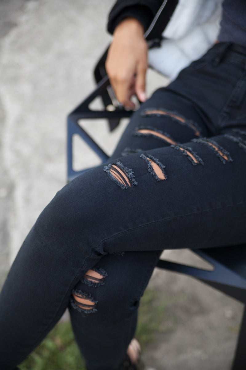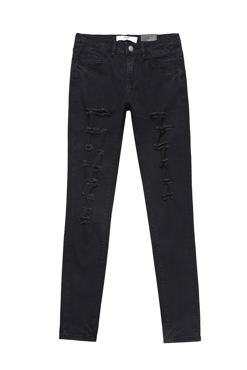 Jean noir Sixth June Femme. Effet destroy à l'avant. Coupe slim.