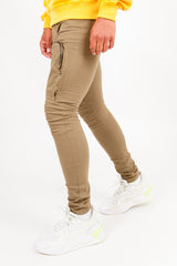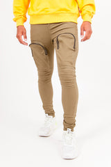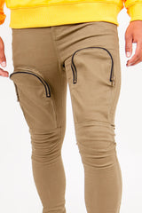 Jean pour homme de marque Sixth June. Deux poches cargo sur les cuisses avec fermeture zippée. Coutures au niveau des genoux. Coupe slim. Modèle kaki.
