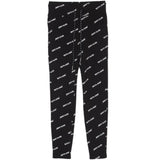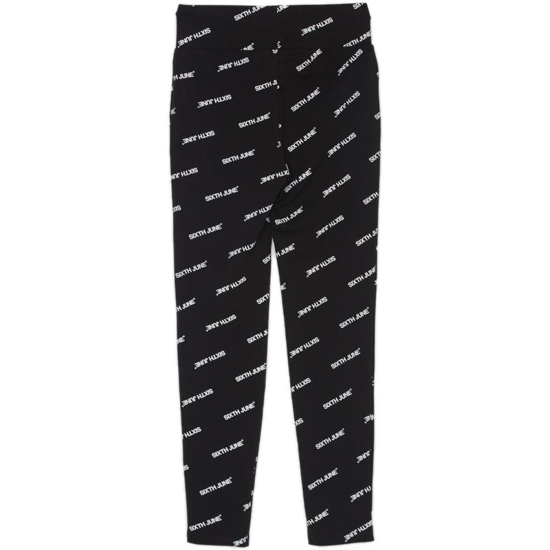 Legging Sixth June pour femme avec imprimés Sixth June "all-over". Coupe moulante, cordons de serrage bicolore oversize et élastique à la taille. Modèle noir avec imprimés blancs.