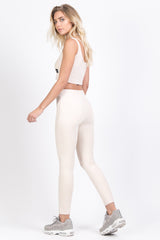 Legging femme Sixth June en matière suédine douce avec un zip à l'avant. Coupe skinny très près du corps et taille haute. Modèle beige.