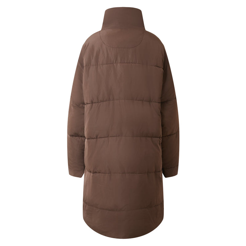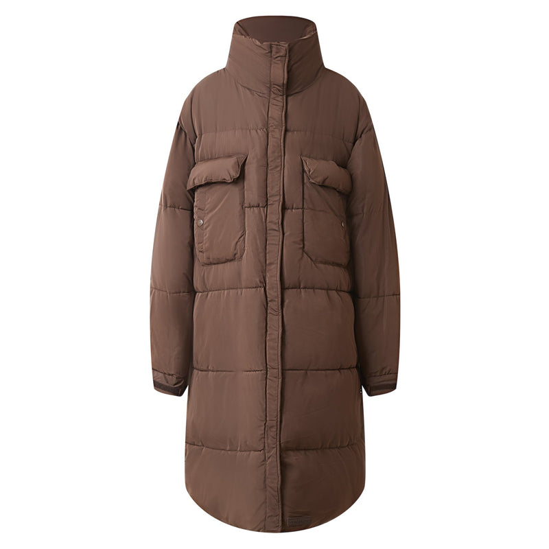 Matière effet matelassée, col montant, deux poches avec fermeture à boutons pression au niveau de la poitrine, poche intérieure.