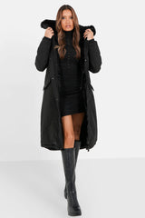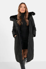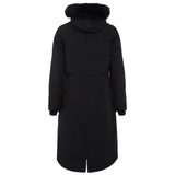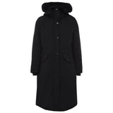 Fausse fourrure amovible au niveau de la capuche, poches à l'avant (doublées), fermeture boutonnée et zippée, bords-côtes aux poignets, taille ajustable à l'intérieur, poche intérieure.