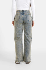 Poches latérales, poches arrières, fermetures à zip et boutonné, logo métallique sur la poche arrière, passant pour ceinture.