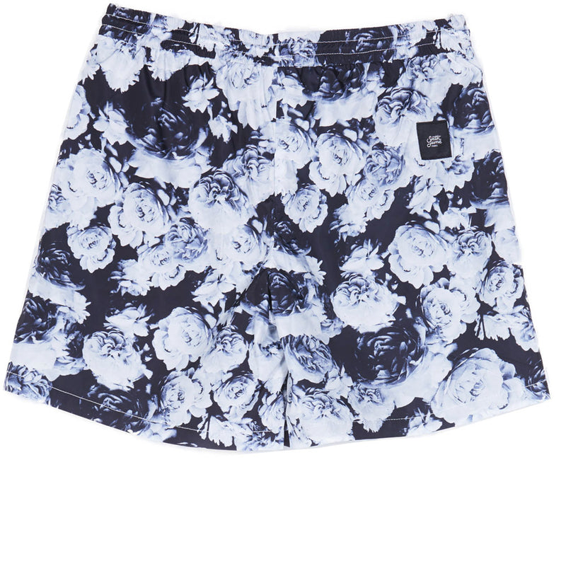 Maillot de bain homme Sixth June avec un imprimé roses all over, une inscription Sixth June Paris et des petits cordons de serrage. Coupe mi-longue et deux poches latérales. Modèle blanc et noir.
