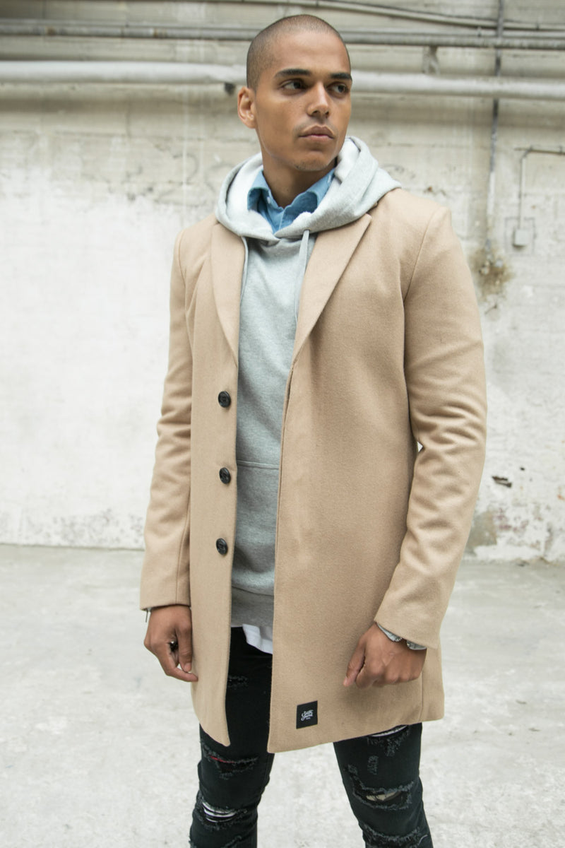 Manteau long Sixth June Homme en laine, avec une coupe classique. Poches latérales et une poche intérieure. Modèle beige.