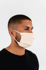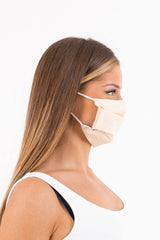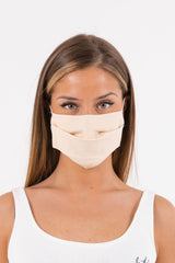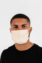 Masque mixte pour adultes. Accessoire de mode, il ne s'agit ni d'un dispositif médical au sens du Règlement UE/2017/745 (masques chirurgicaux), ni d'un équipement de protection individuelle au sens du Règlement UE/2016/425 (masques filtrants de type FFP2). Coupe classique, barrette nasale. Modèle Beige Vanille.