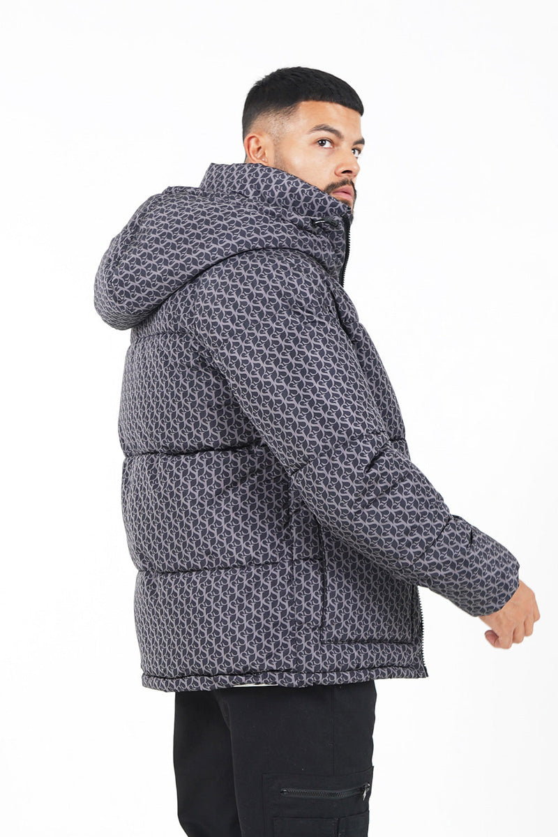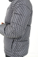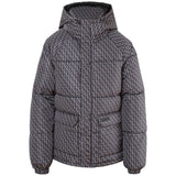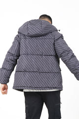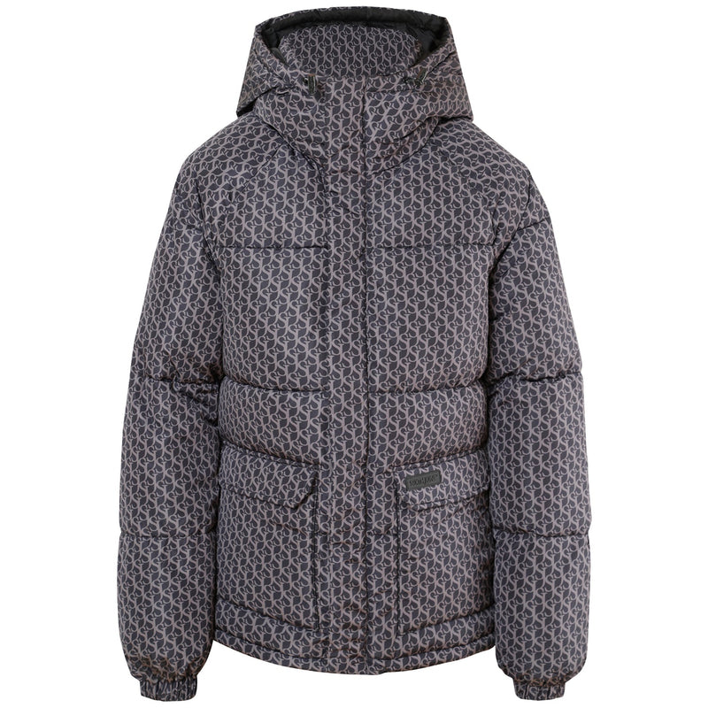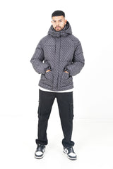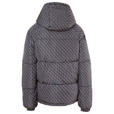 Tissus en monogramme, effet matelassée, col montant avec capuche (non amovible) à cordon de serrage.