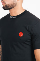 T-shirt manches courtes pour homme de marque Sixth June. Logo imprimé à l'arrière avec MONTMARTE écrit en couleur holographique. Petit patch rouge sur la poitrine, col côtelé, imprimé SIXTH JUNE en police gothique sur le col. Coupe ajustée. Modèle noir.