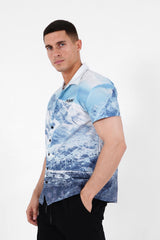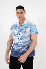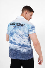 Grand imprimé de montagnes sur l'ensemble du tissu.