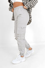 Poches cargos, poches latérales et fausses poches zippées sur chaque côté.