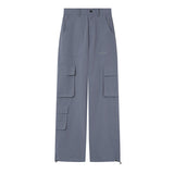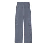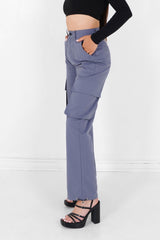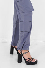 Poches arrières, fermeture à zip et bouton, passant pour ceinture, cordon de serrage aux chevilles.