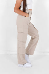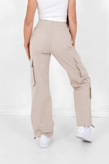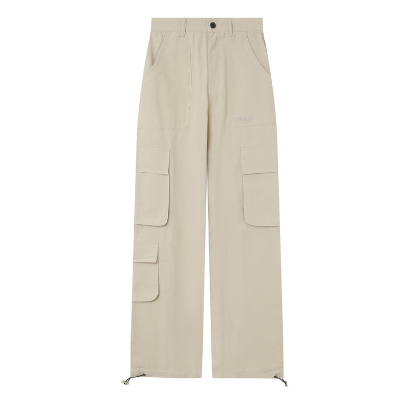 Poches à rabats le long de chaque jambe, poches latérales avec logo brodé sur l'une des deux.