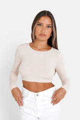 Top manches longues dos nu Beige clair