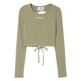 Matière côtelée, dos nu. Cordon de serrage dans le dos, logo brodé au centre de la poitrine.