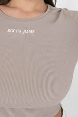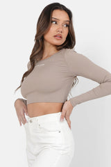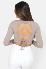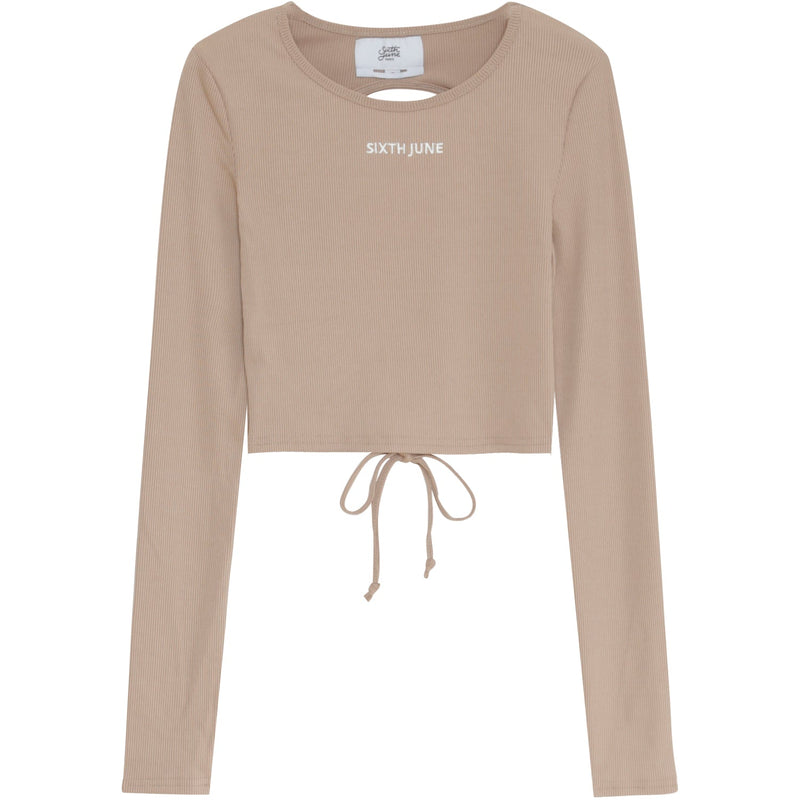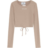 Matière côtelée, dos nu. Cordon de serrage dans le dos, logo brodé au centre de la poitrine.