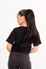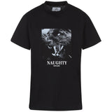 T-shirt pour femme de marque Sixth June. Imprimé panthère au centre avec inscription "naughty" en blanc. Coupe classique. Modèle noir.