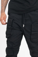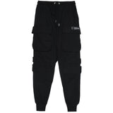 Stylé tactique avec des multiples poches et empiècement à l'avant. Poches cargo avec fermeture à scratch sur les jambes, empiècements à relief sur le bas des jambes, Taille élastique avec cordon de serrage, bords-côtes aux chevilles, poches latérales et à l'arrière.
