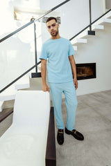 Tissu fluide effet plissé, logo brodé au niveau des poches arrières, poches latérales et fausses poches à l'arrière.