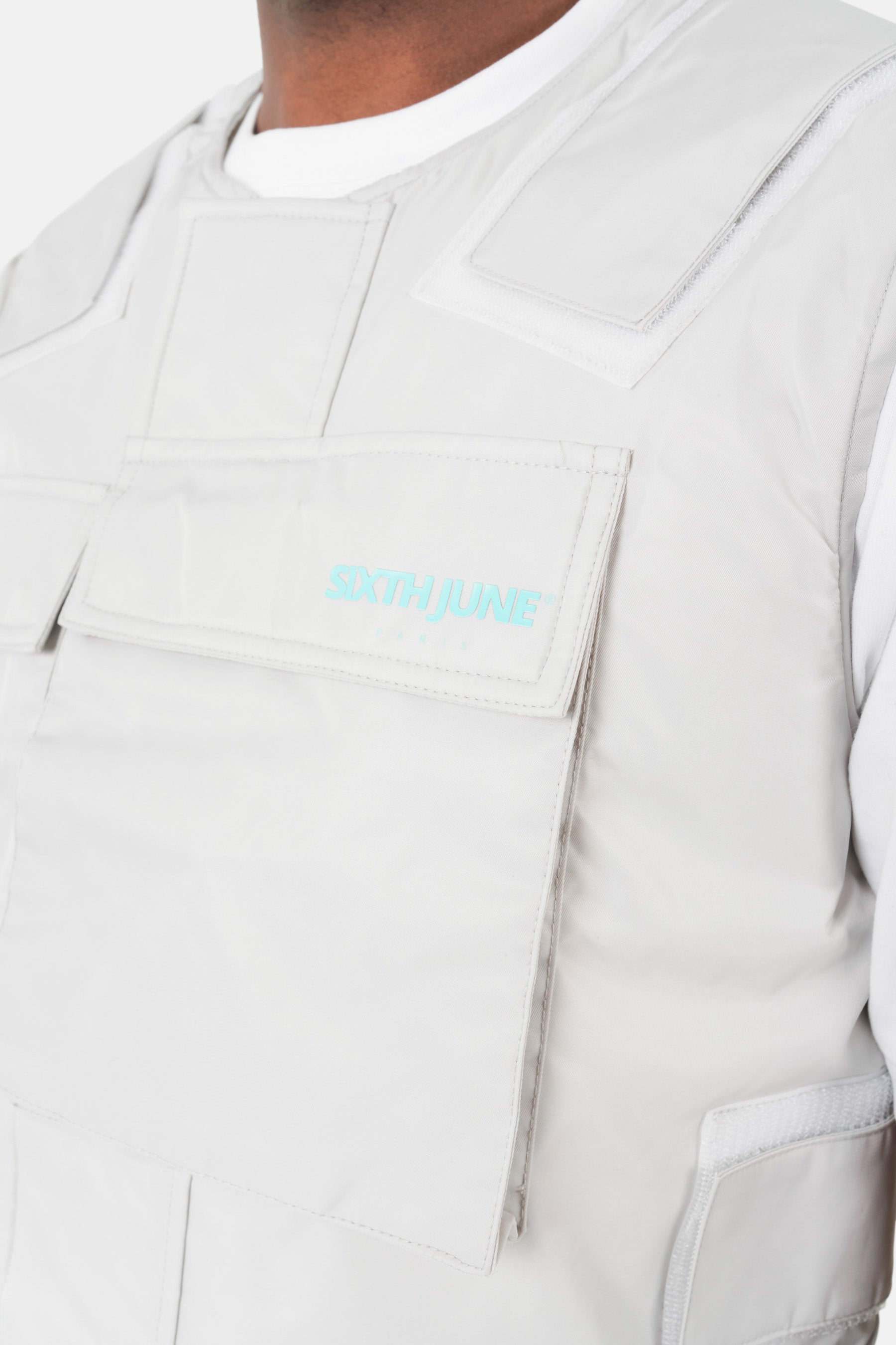 Scratch sur les épaules et sur les côtés, poches à rabats aimantés, logo Sixth June Paris à l'avant sur l'une des poches, mousqueton à l'avant.
