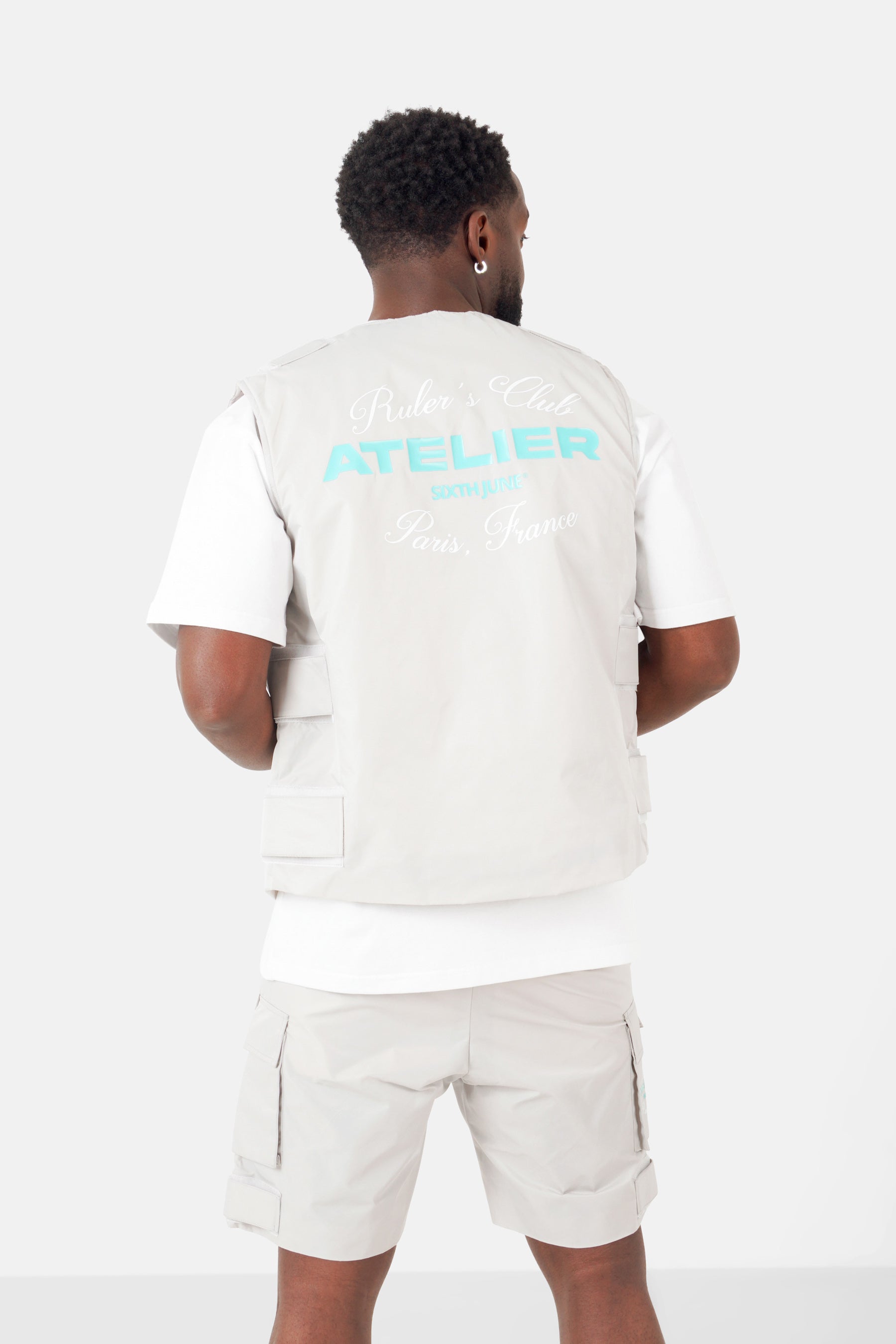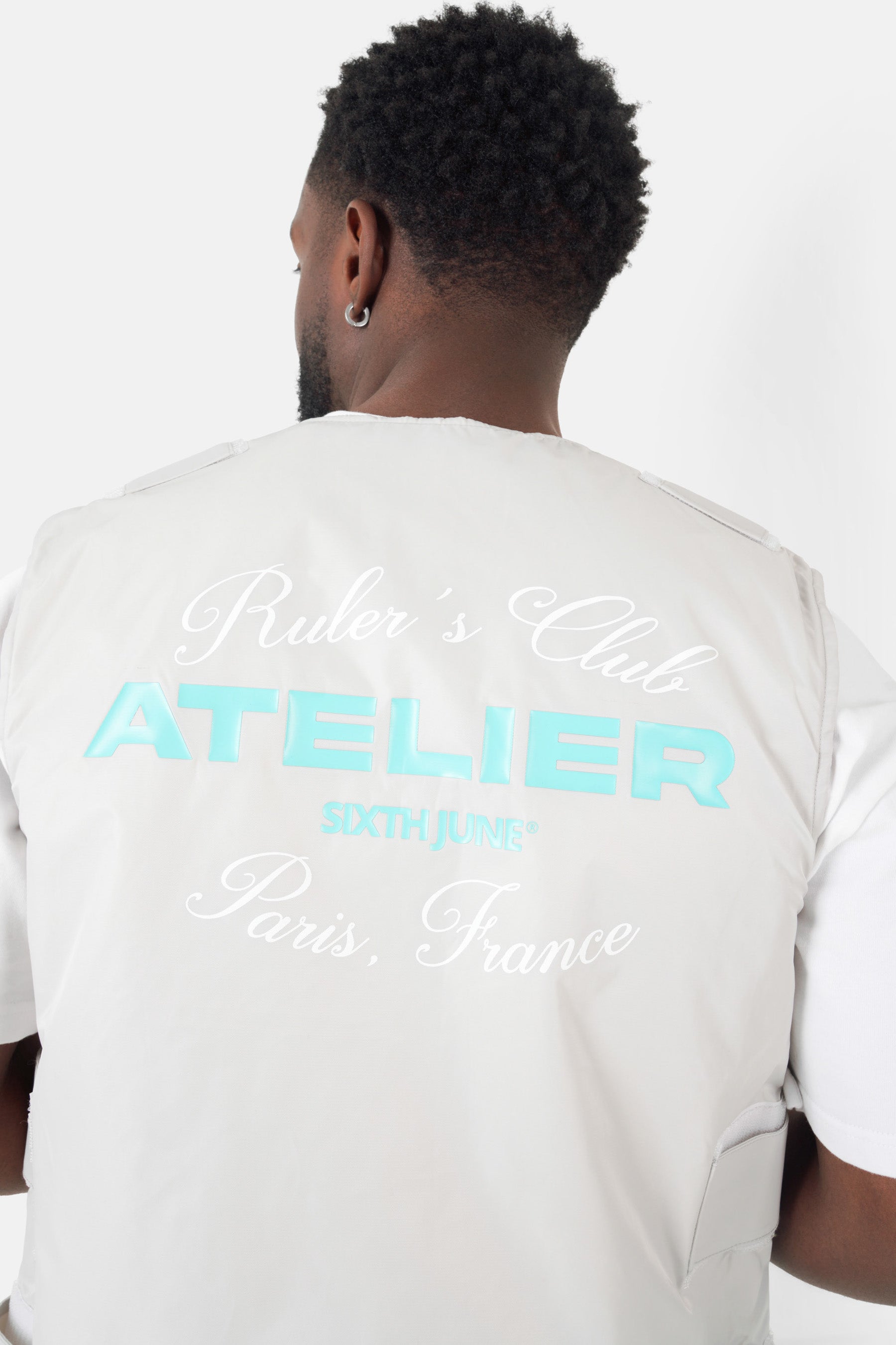 Fermeture centrale zippée et à scratch, "Ruler's Club ATELIER SIXTH JUNE Paris France" imprimé à l'arrière en grand, poche intérieure.