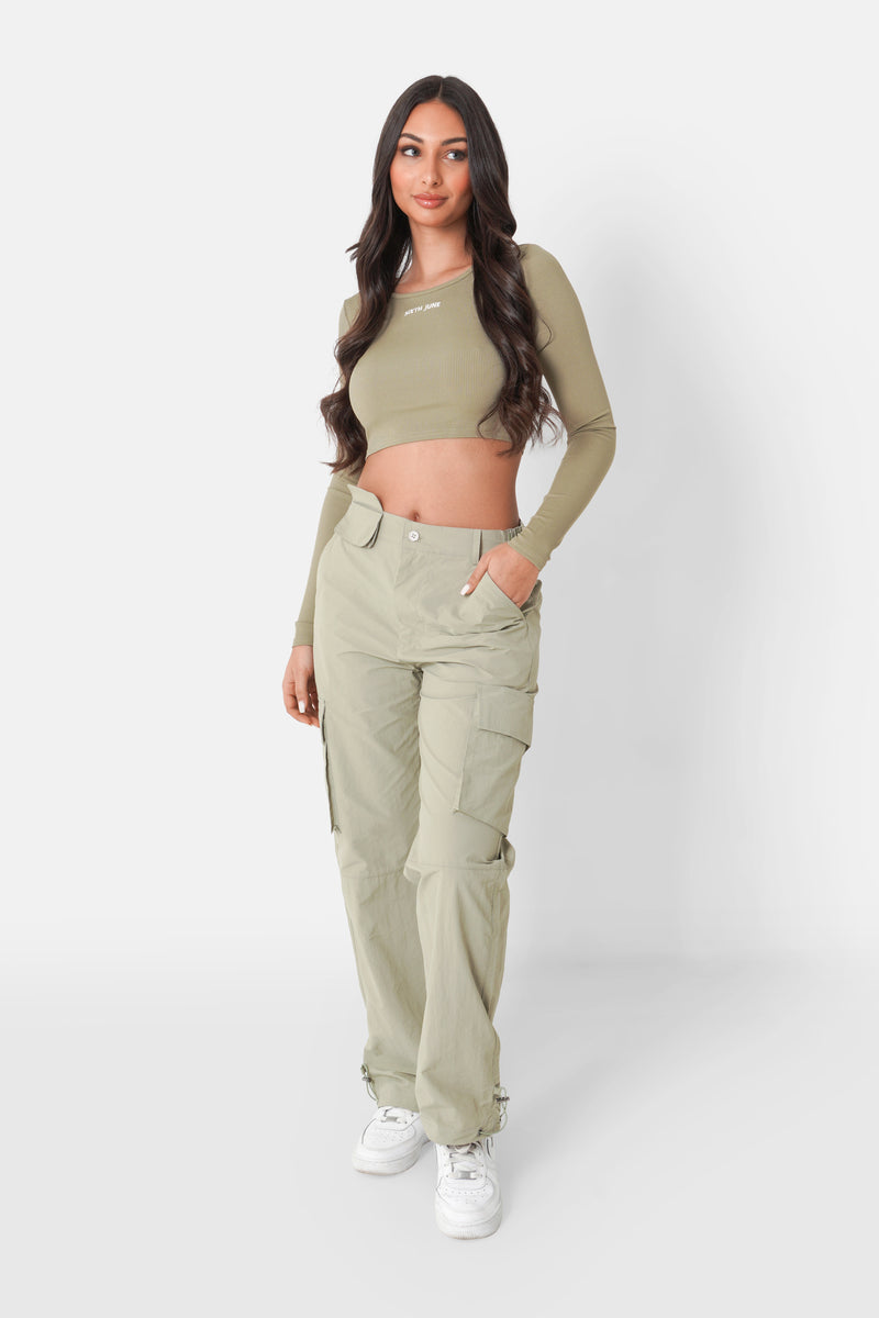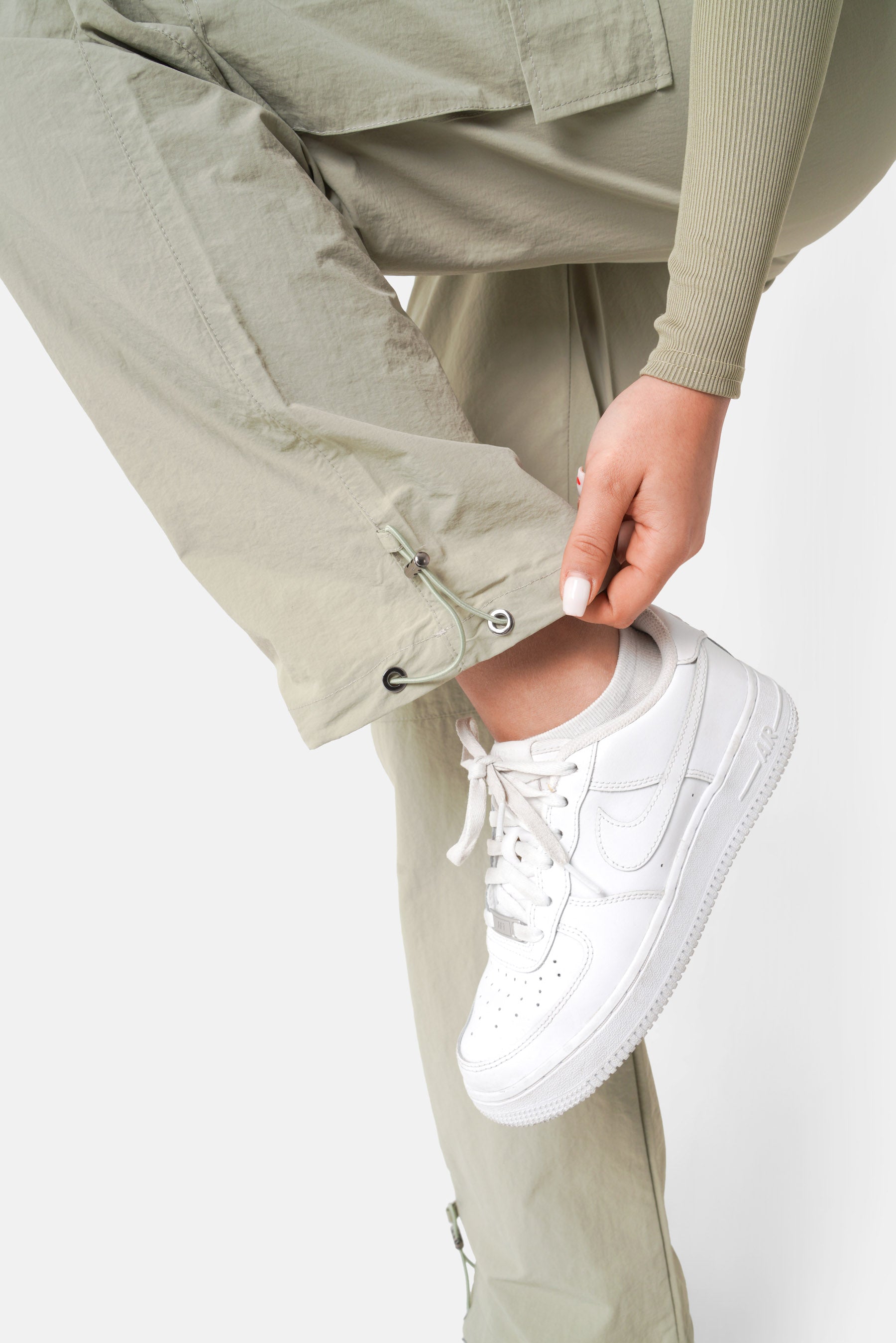 Logo patch à l'arrière, poches plaquées à l'arrière, petite poche au niveau de la ceinture, passants pour ceinture, fermeture à bouton et à zip, cordons de serrage au niveau des chevilles.