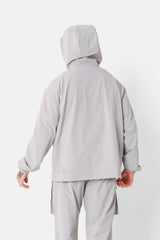 Effet nylon tech, poche kangourou à l'avant avec fermeture à scratch et à zip.