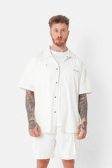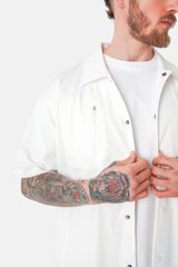 Poche nylon sur le côté au niveau de la poitrine droite, fermeture centrale à boutons de pressions.