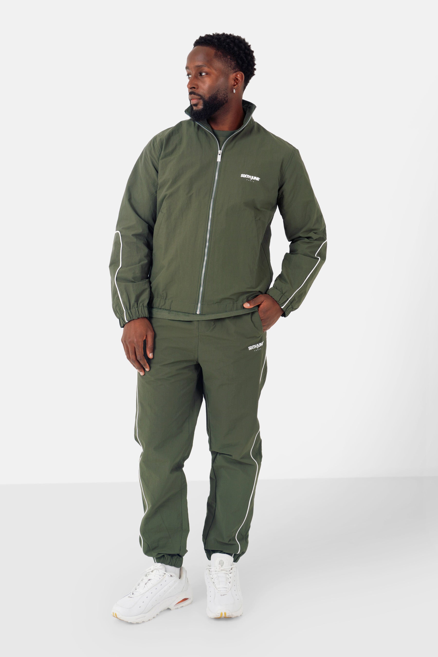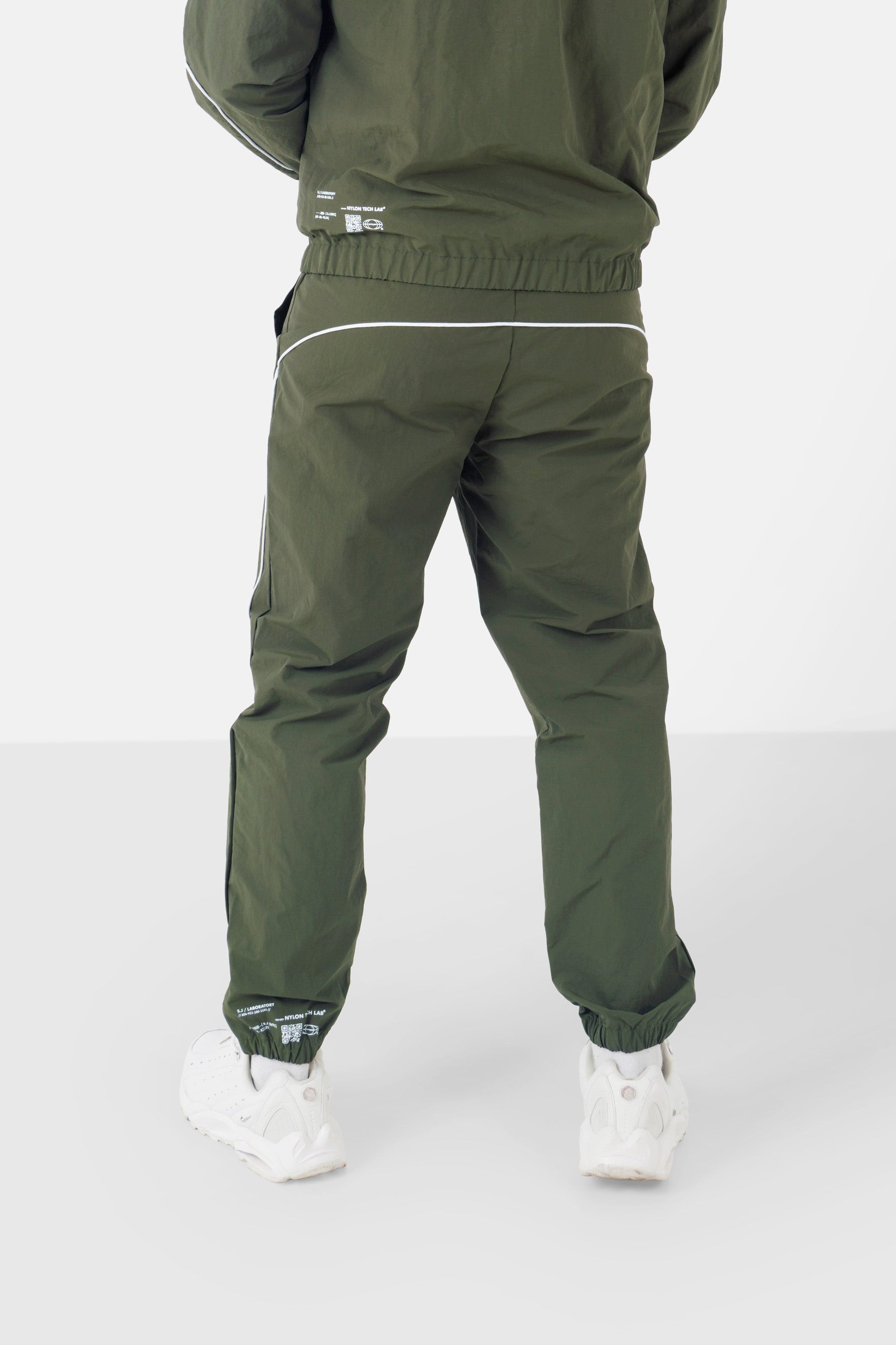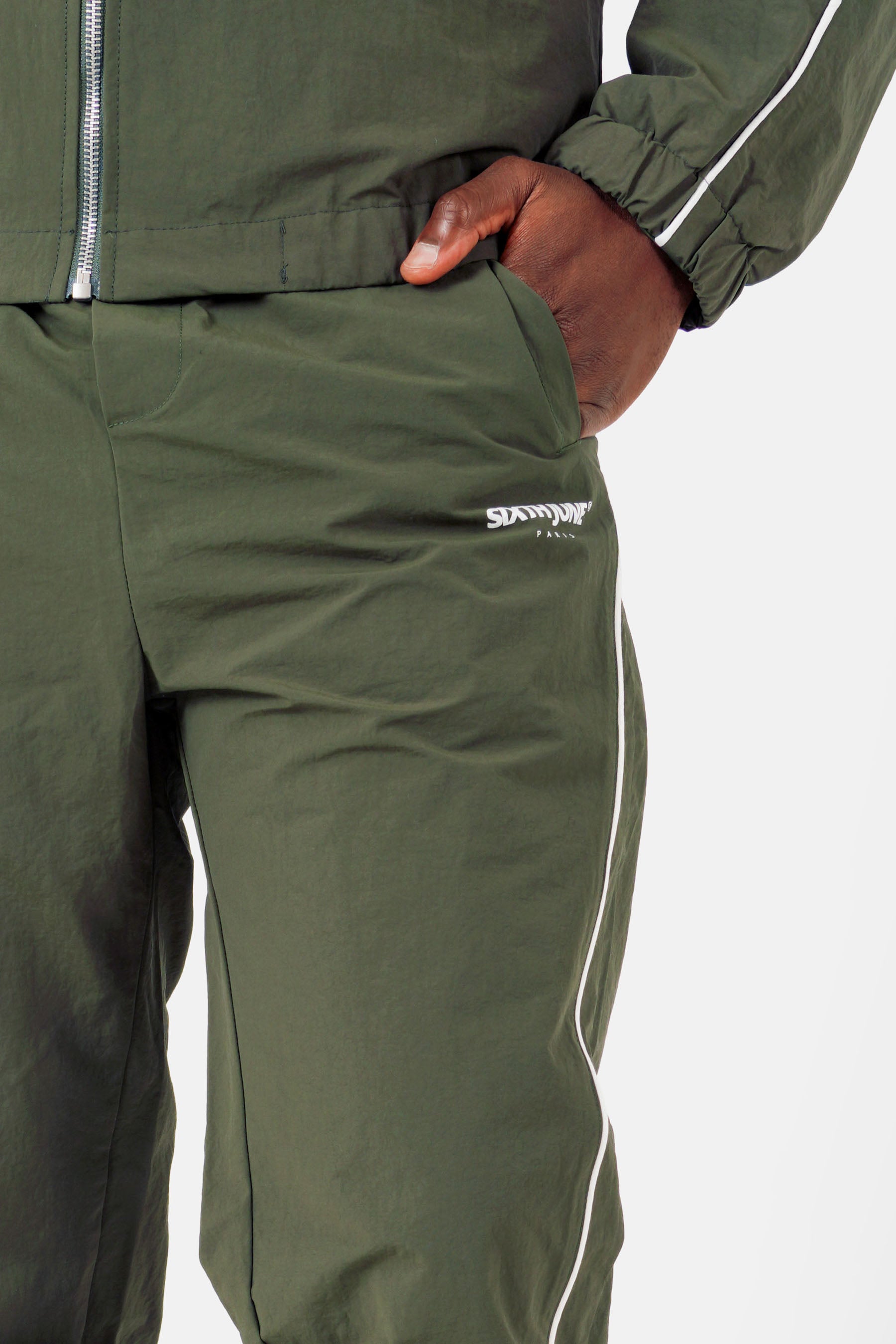 Poches latérales, cordon de serrage à la taille, logo su la jambe gauche.