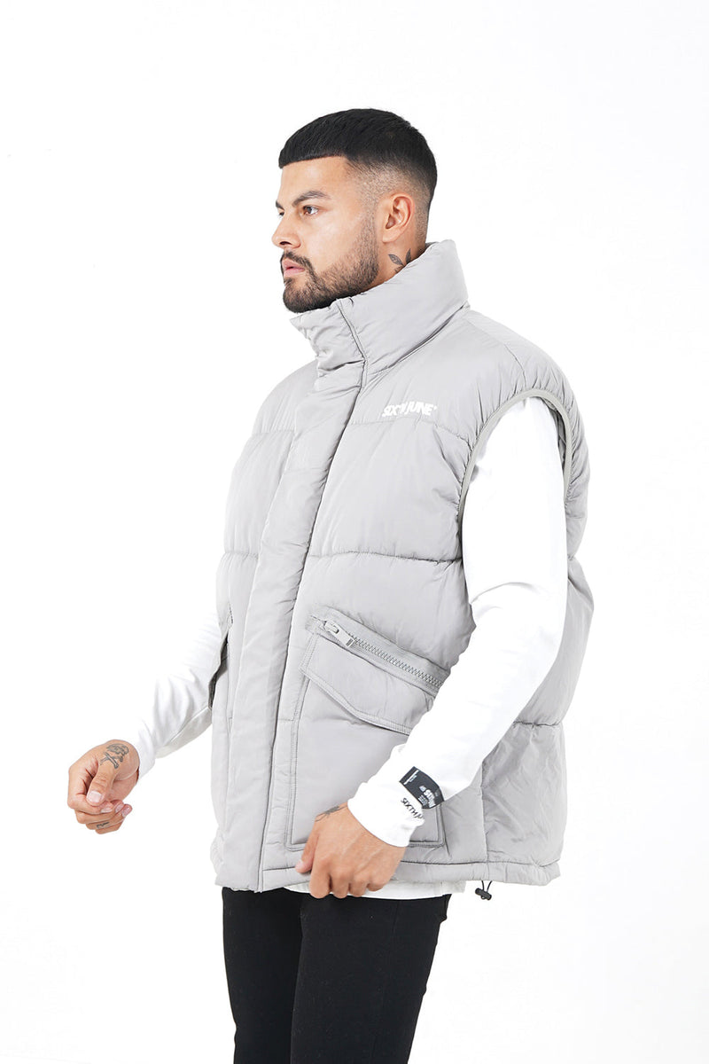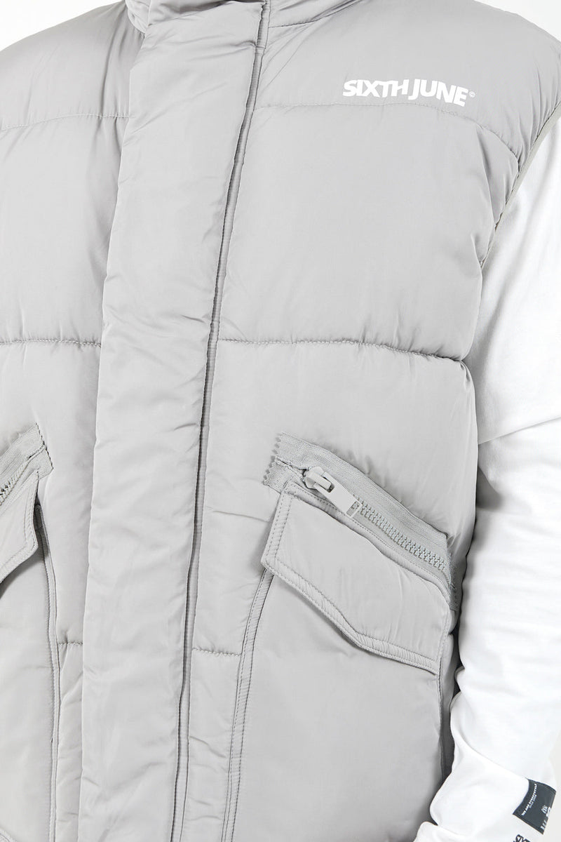 Effet matelassé, col montant avec patch réfléchissant imprimé SIXTH JUNE au niveau de la nuque. Deux poches avant avec fermeture à rabat avec aimant, intérieur en tissu polaire et poche à zip au-dessus, fermeture centrale à zip et aimantée, cordon de serrage à la taille à l'intérieur.