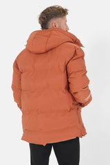 Effet matelassé et rembourré, capuche non amovible avec cordon de serrage.