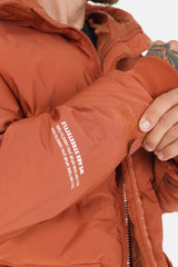 Texte imprimé sur l'avant bras droit, poches à l'avant avec fermeture aimanté, fermeture centrale à zip et aimantée, petite ouverture à zip sur les bas côtés, pattes de serrage à scratch au niveau des poignets, doublure 100% polyester, ne pas essorer en machine.