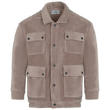 Tissu polaire, quatre poches à rabats à l'avant avec fermeture à boutons pression. Fermeture centrale boutonnée, languettes tissée dans le dos avec inscription SJ et du texte.