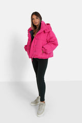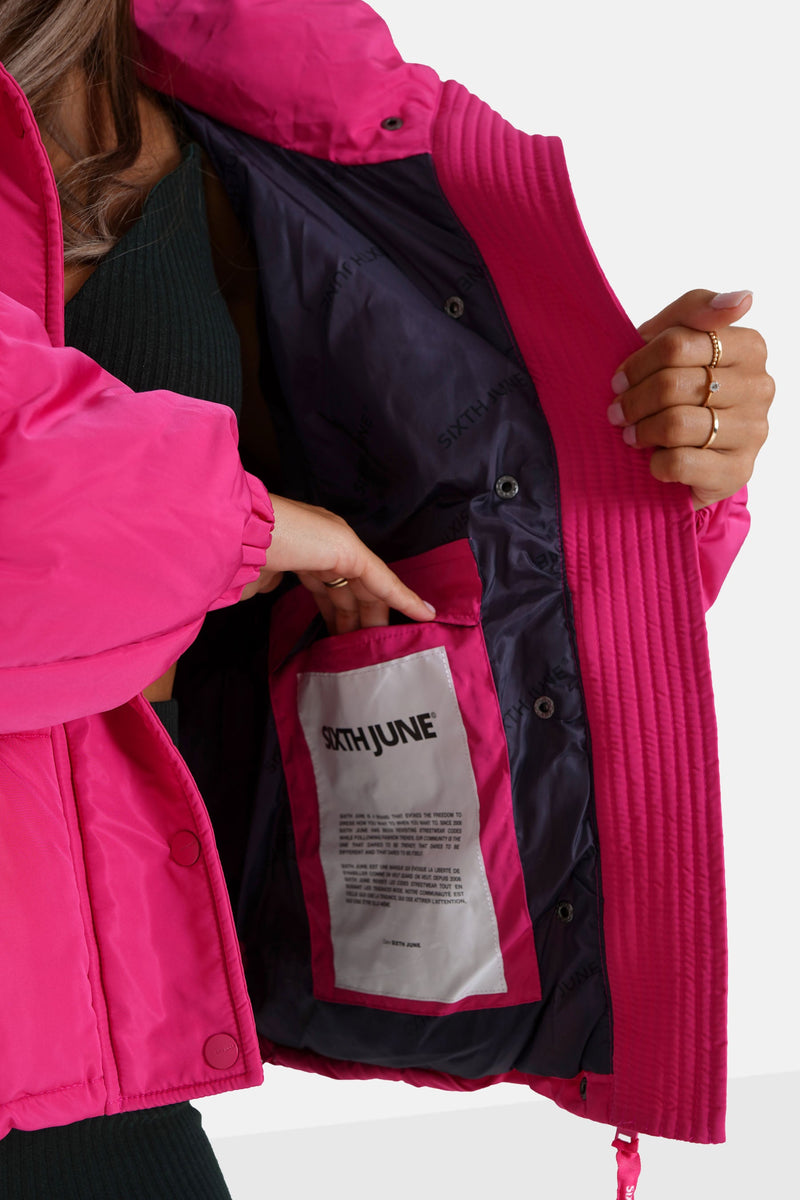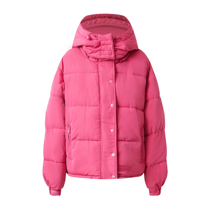 Effet matelassé, logo sur patch en gomme près de la base, poches latérales à zip. Fermeture centrale à zip et boutons pression, capuche amovible avec cordons de serrage et fermeture à scratch, élastique aux poignets, poche intérieure, élastique à la taille avec cordons de serrage, doublure (100% polyester), ne pas essorer en machine.