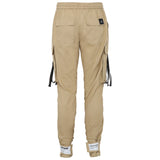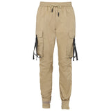 Grandes poches latérales avec sangles. Fermeture à scratch avec patch aux chevilles, Elastique avec cordons de serrage à la taille.