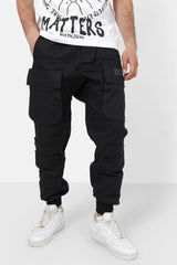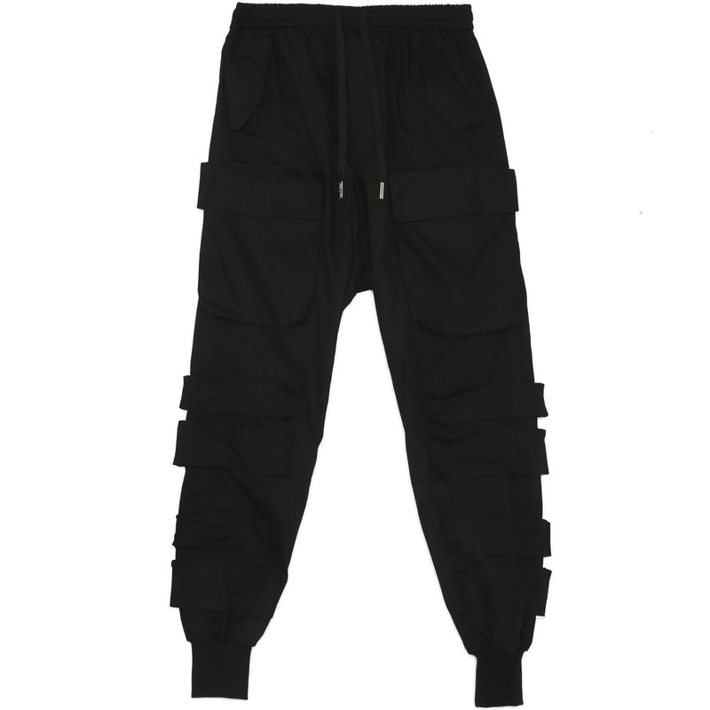 Deux grandes poches cargo à l'avant et à l'arrière, empiècements en bas à l'avant, élastique à la taille et aux chevilles.