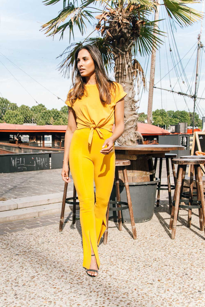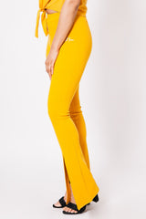 Pantalon flare fente moutarde