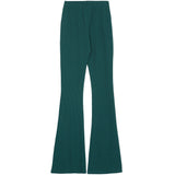 Pantalon pattes d'éléphant Sixth June pour femme avec logo "Sixth June" signature brodé à l'avant. Coupe moulante puis évasée à partir des mollets, taille haute élastique et matière légèrement côtelée. Modèle vert foncé.