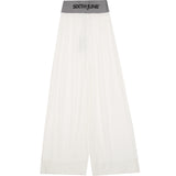 Pantalon ample pour femme de marque Sixth June. Elastique à la taille avec imprimé logo. Matière plissée et doublure en coton (non transparent). Coupe large. Modèle blanc.