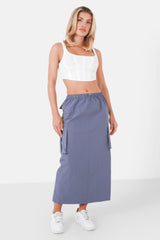 Poche cargo sur les côtés et à l'arrière, fente à l'arrière en bas de la jupe.