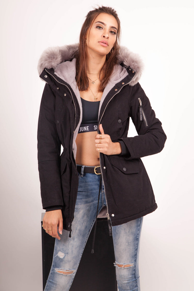 Parka doublure fourrure noir gris