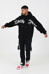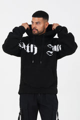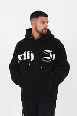 Sweat à capuche pour homme de marque Sixth June. Matière sherpa, douce et moelleuse. Inscription SIXTHJUNE en police gothique à l'avant, poche kangourou. Coupe large, épaules tombantes. Modèle Noir.