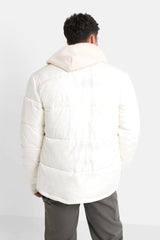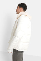 Doudoune col côtelé Blanc cassé