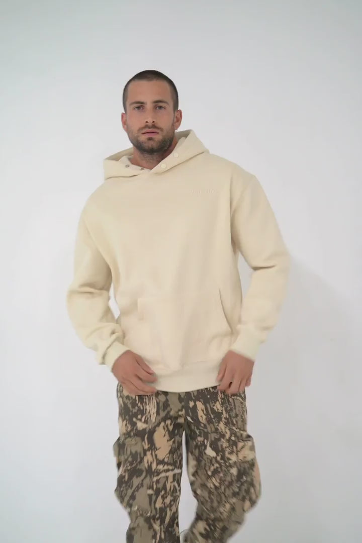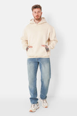 Matière douce et épaisse, molletonnée à l'intérieur, poches kangourou, 2 boutons à pression au niveau du col capuche, bords-côtes aux poignets et à la taille.