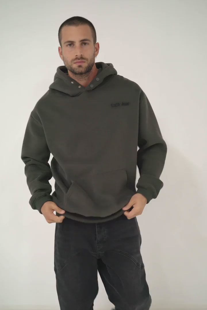 Matière douce et épaisse, molletonnée à l'intérieur, poches kangourou, 2 boutons à pression au niveau du col capuche, bords-côtes aux poignets et à la taille.