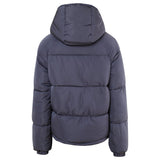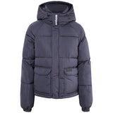 Effet matelassé, col montant avec capuche à cordon de serrage, logo imprimé sur la languette au niveau du col, deux poches avant à rabat et fermeture à aimant, poche intérieur.
