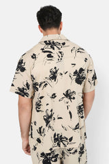 Chemise manches courtes floral Beige