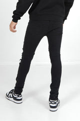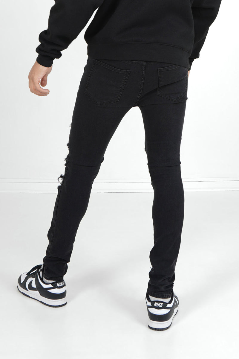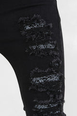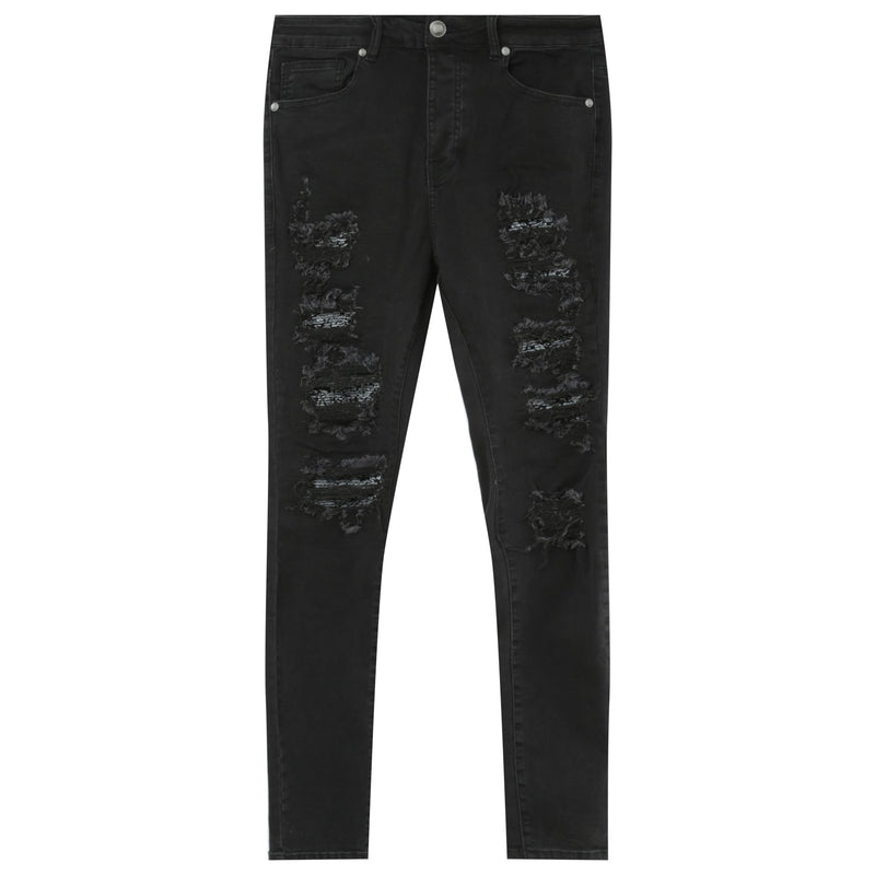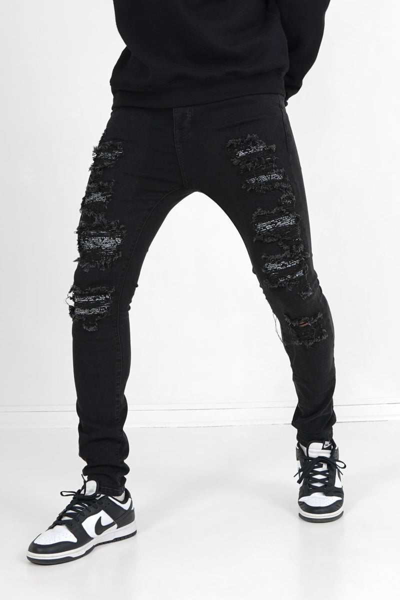 Empiècements bandana avec effet destroy à l'avant. Poches à l'avant, à l'arrière, fermeture boutonnée.
