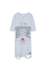 Robe t-shirt Sixth June avec imprimé tête de mort, roses, inscriptions à l'avant, et des déchirures en bas. Coupe large et épaules tombantes. Modèle gris et imprimés noir et rouge.